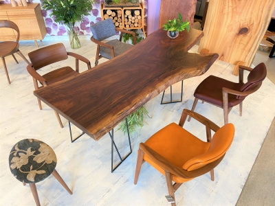 一枚板=高価のイメージが強いですが、そのイメージを覆すほどの最大級の値引き率で当店自慢の一枚板テーブルが皆様をお待ちしています!