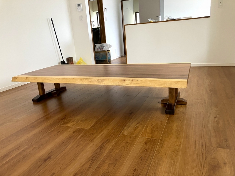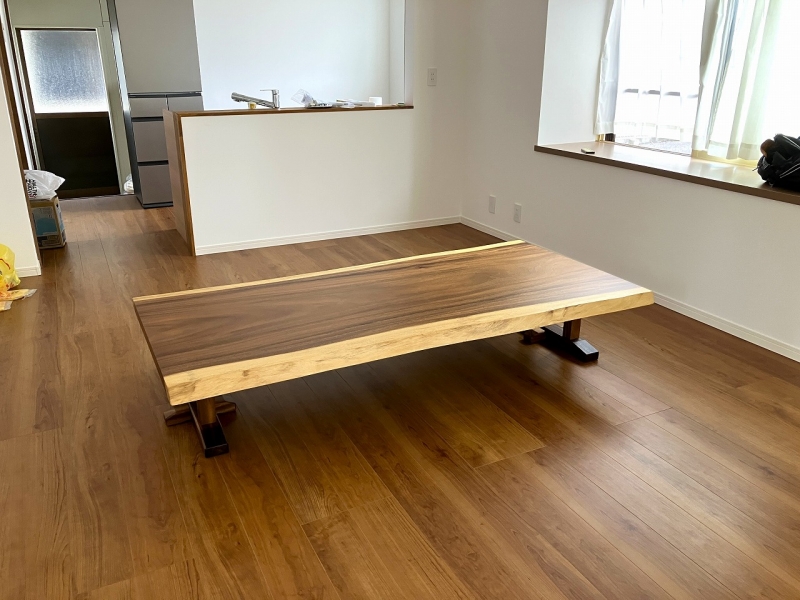 新潟市のT様邸へ196幅一枚板モンキーポット材フロアテーブルをお届けしました!