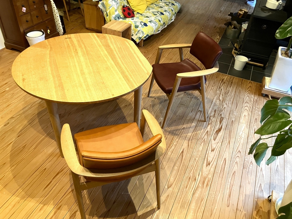 【205幅一枚板栃材ダイニングテーブルセット】【165幅一枚板クルミ材フロアテーブル】お届けしました!