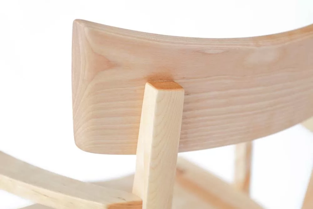前脚と座面の接合には古来からの手法である、割り楔(わりくさび)を用いて強度とデザインを両立しています。