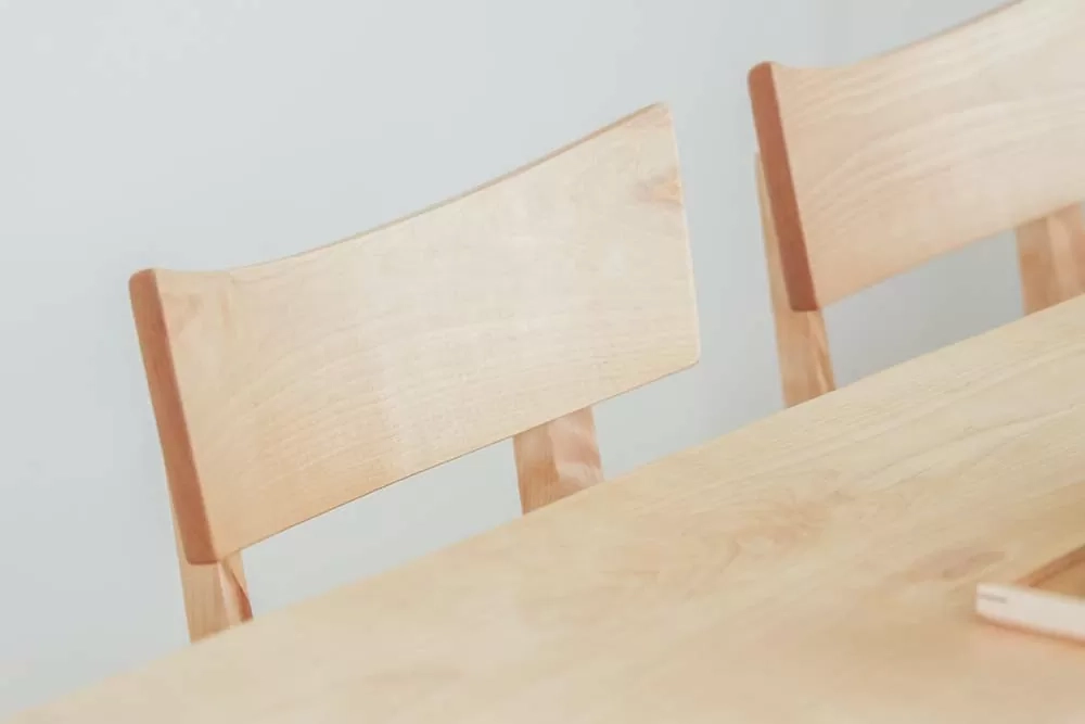 その為脚と脚の間には補強材を使用していませんので軽量化にも繋がっています。座面に座ぐりを入れ、掛け心地も優れています。